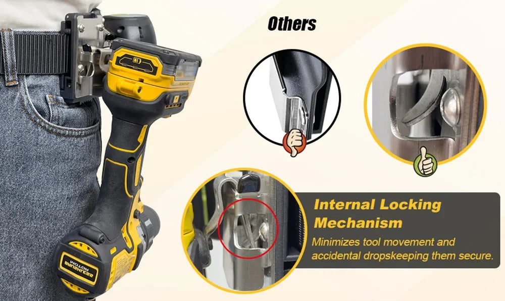 ✅ Clipe de dupla trava: pressione os botões laterais e prenda/solte sua furadeira com facilidade