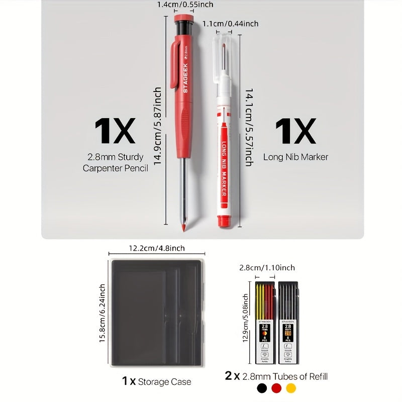 Eleve o nível da sua marcação com os Lápis de Carpinteiro Heavy Duty da STGAEEK! Projetado para marceneiros, arquitetos, engenheiros e todos que exigem precisão em locais difíceis de alcançar. Seja para madeira, concreto ou metal, esse kit é essencial para marcações profundas, visíveis e duradouras! 💪🪵