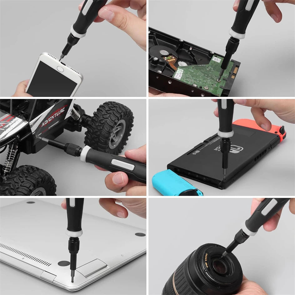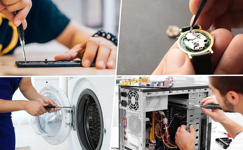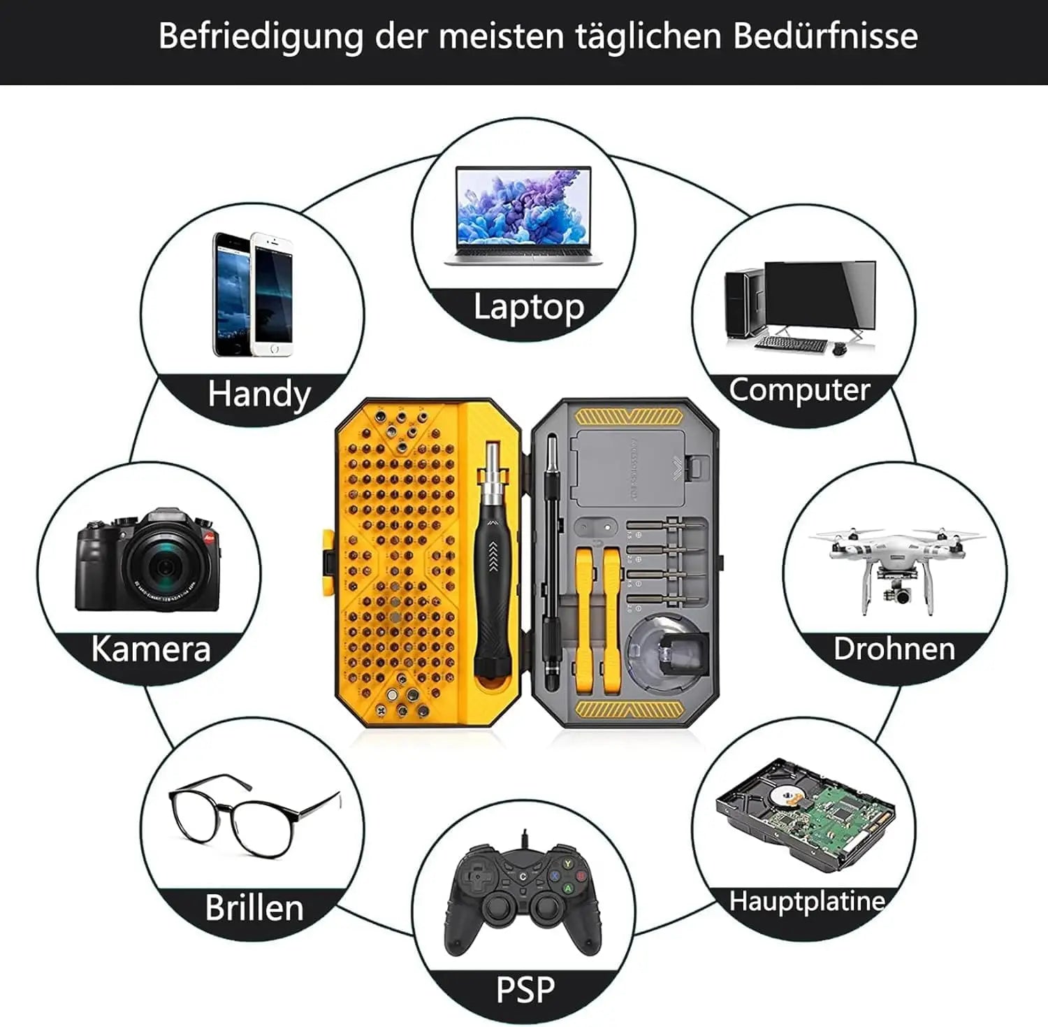 🔩 145 em 1 – Completo e Versátil: Ideal para manutenção de celulares, tablets, computadores, relógios, câmeras, videogames e até óculos.