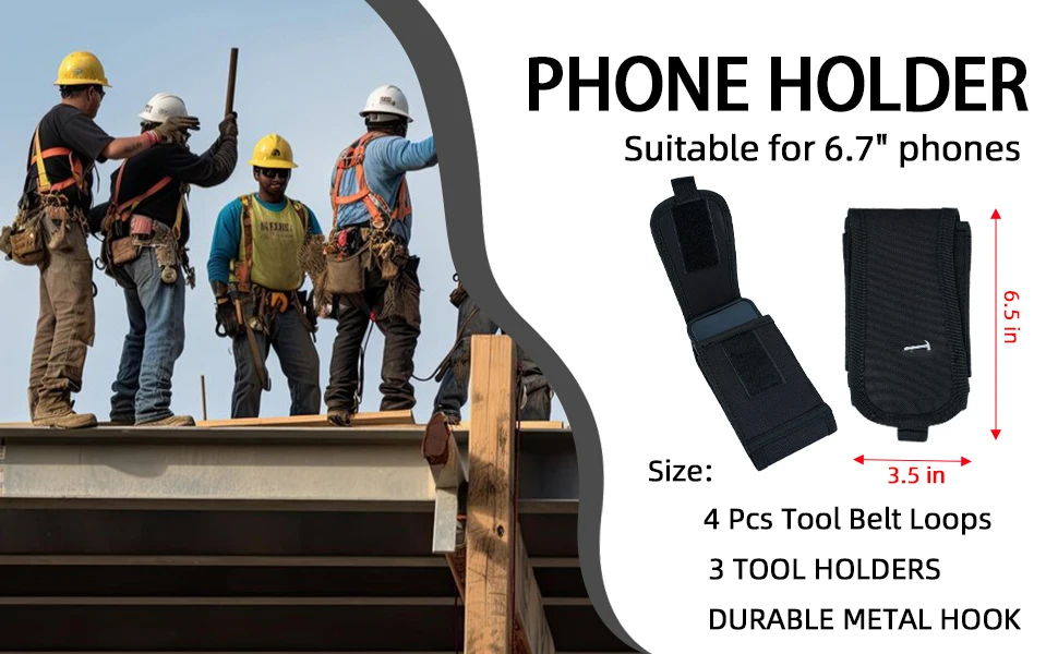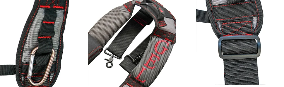 Alívio de Carga: As 4 alças para cinto fixam firmemente seu cinto de ferramentas, reduzindo a pressão sobre os quadris e a cintura.