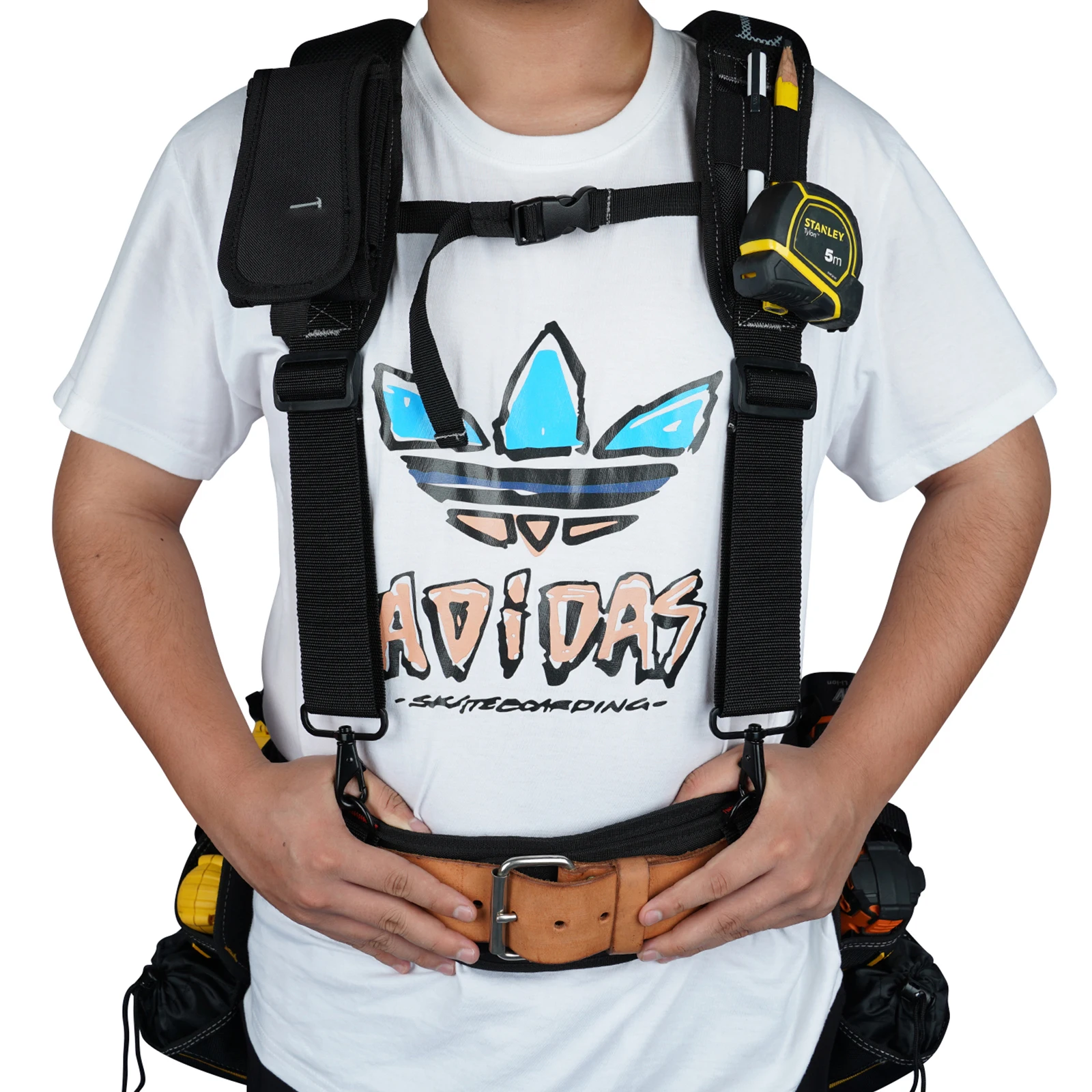 Alivie o peso do seu cinto de ferramentas com esta cinta suspensória reforçada, projetada para distribuir a carga de maneira eficiente e proporcionar conforto durante longas jornadas de trabalho.