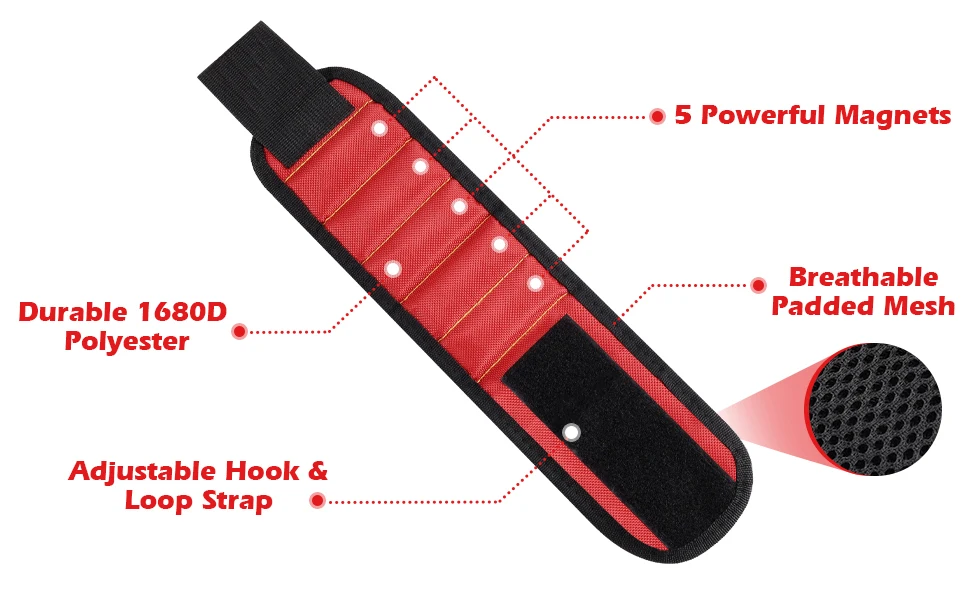 A pulseira magnética é a solução prática e inteligente para quem trabalha com ferramentas pequenas e precisa de agilidade. Com 2 super ímãs embutidos, ela segura com firmeza parafusos, brocas, pregos, porcas, tesouras e muito mais — tudo ao alcance do seu pulso.