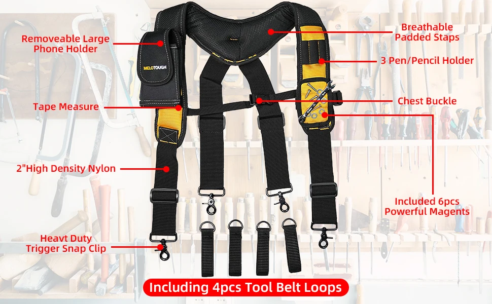 MELOTOUGH Suspensório Magnético para Cinto de Ferramentas – Conforto Extremo e Praticidade no Seu Trabalho