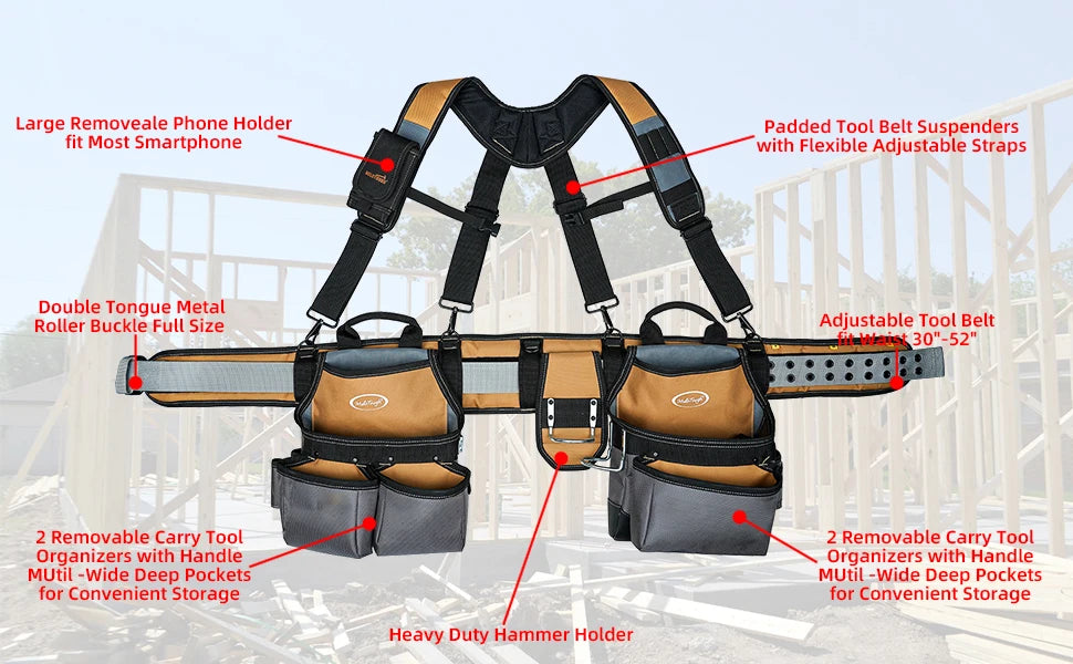 Se você é carpinteiro, pedreiro, eletricista, instalador ou qualquer profissional que precisa carregar várias ferramentas no dia a dia, esse kit completo com cinto de ferramentas e suspensório é a escolha perfeita para trazer conforto, organização e durabilidade ao seu trabalho.