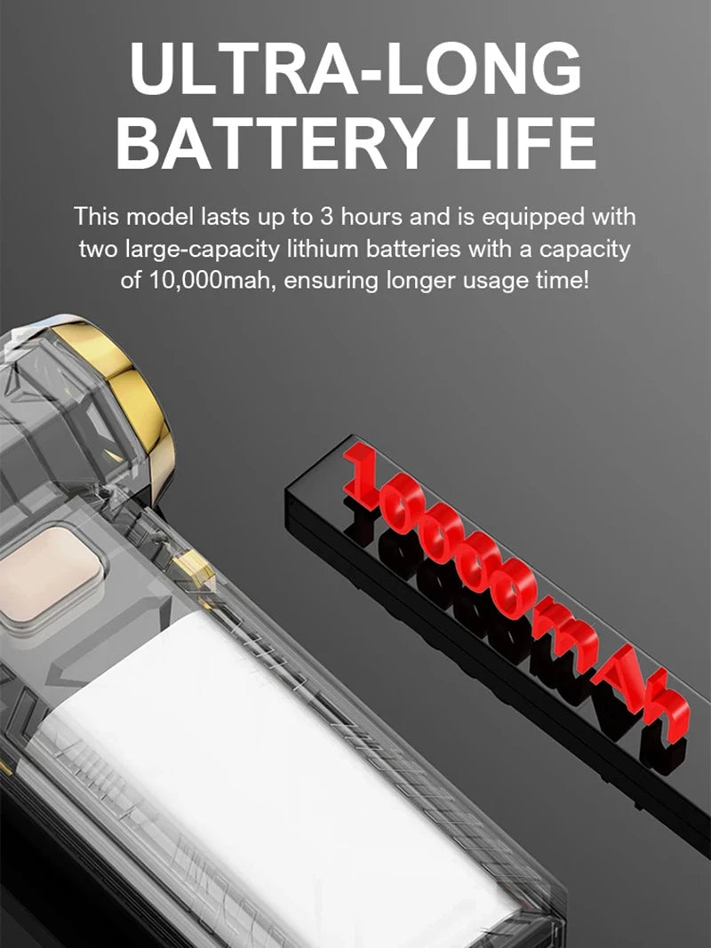 🔋 Bateria Integrada 10000mAh – Até 2 horas de uso em baixa potência