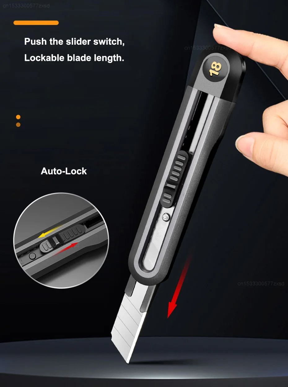 Perfeita para uso doméstico, industrial ou comercial, a Faca Retrátil Youpin Snap-off é a ferramenta ideal para cortar papel, plástico, couro, cordas, papelão e muito mais com praticidade e segurança.